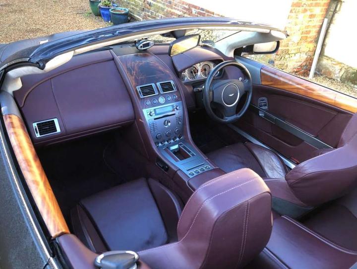 2005 Aston Martin DB9 Volante finished in Meteorite Silver with Iron Ore hide interior and Mahogany veneered door cappings and centre console. This beautifully kept, one owner example has been sparingly used over the 20 years having covered only 36,000 miles and has always been garaged from new. It has a meticulously recorded service history with 18 services stamps, 9 of which are from Aston Martin main agents and a further 9 services with well-respected Aston Martin Specialists. In the past 2 years alone, it has had the benefit of a brake overhaul, new fuel pumps and a new battery. The standard DB9 specification includes Climate Control, Satellite Navigation, electrically adjustable heated seats with lumbar support and anti-skid control. This car was also ordered with Touchtronic transmission, a Dolby 950-watt Linn Hifi system, cruise control, leather clad steering wheel, heated front screen, bright finish front Grille and 19" alloys with light grey brake calipers. On viewing this car, it immediately becomes apparent from its condition and its exemplary service history that it has been very well cared for in the correct manner. Sensibly priced for one in this condition at £31,950