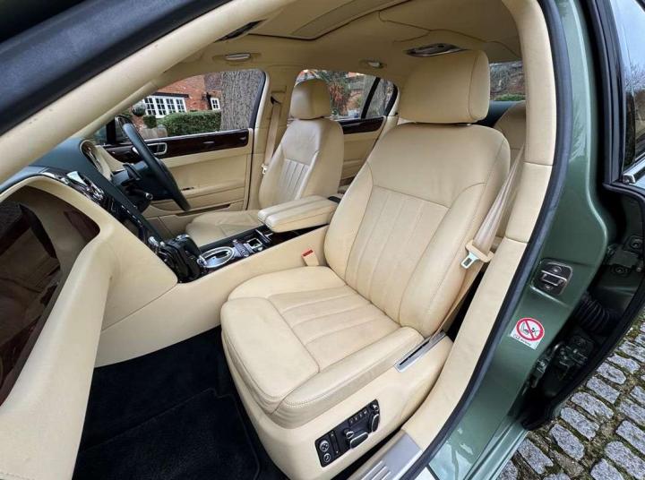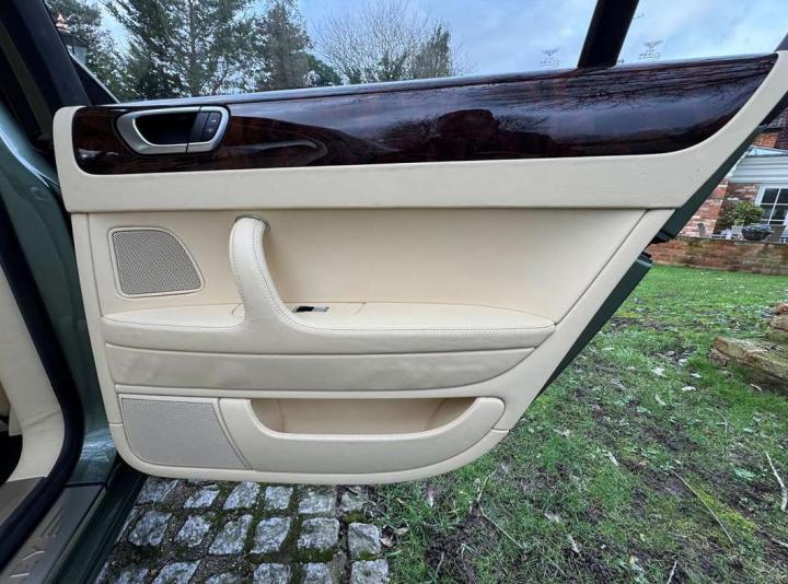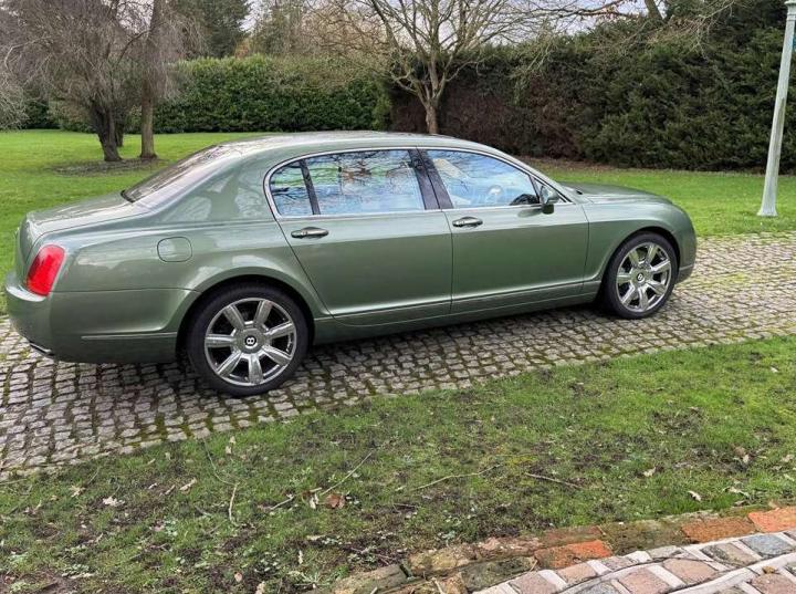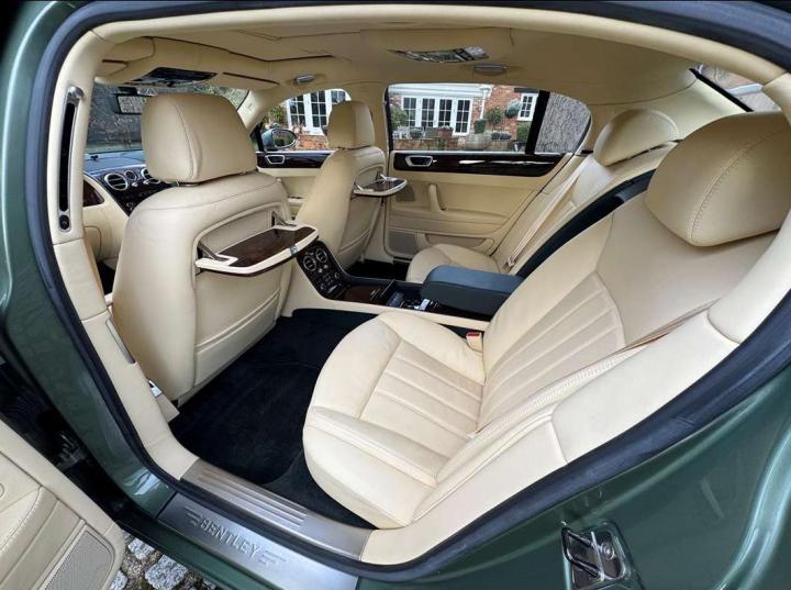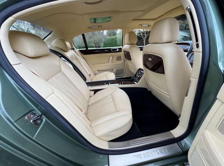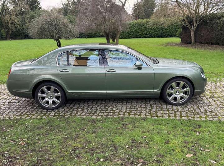 This exceptionally low mileage (8,986 miles) 2007 Bentley Continental Flying Spur was purchased from new by the Titled owner in August 2007 and has been used soleley for special occasions. This solitary owner has been a serious collector and car enthusiast for many years and the car has formed part of an interesting and diverse collection. Purchased new from Jack Barclay at a cost of £136,720, the car is finished in a special order colour of Alpine green with a stunning unmarked interior finshed in Magnolia hide with Spruce Dash top, best quality Wilton carpet throughout and Burr Walnut veneered rear picnic tables. The specification further includes a full length rear centre console at a cost of over £4,000, Satelite navigation, TV facility, an electric glass sun roof, 20" chome wheels, a Nav Trac security system and everything else one would expect in a car of this superior quality. It comes supplied with its original Bentley service book with 14 service stamps and a chronologically kept history file and15 mot certificates showing the very gradual progression of the recorded mileage. Unrepeatable value at £22,950