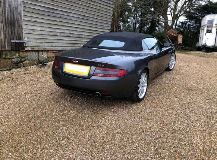 2005 Aston Martin DB9 Volante finished in Meteorite Silver with Iron Ore hide interior and Mahogany veneered door cappings and centre console. This beautifully kept, one owner example has been sparingly used over the 20 years having covered only 36,000 miles and has always been garaged from new. It has a meticulously recorded service history with 18 services stamps, 9 of which are from Aston Martin main agents and a further 9 services with well-respected Aston Martin Specialists. In the past 2 years alone, it has had the benefit of a brake overhaul, new fuel pumps and a new battery. The standard DB9 specification includes Climate Control, Satellite Navigation, electrically adjustable heated seats with lumbar support and anti-skid control. This car was also ordered with Touchtronic transmission, a Dolby 950-watt Linn Hifi system, cruise control, leather clad steering wheel, heated front screen, bright finish front Grille and 19" alloys with light grey brake calipers. On viewing this car, it immediately becomes apparent from its condition and its exemplary service history that it has been very well cared for in the correct manner. Sensibly priced for one in this condition at £31,950
