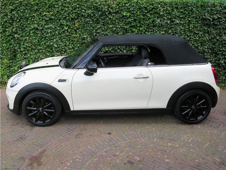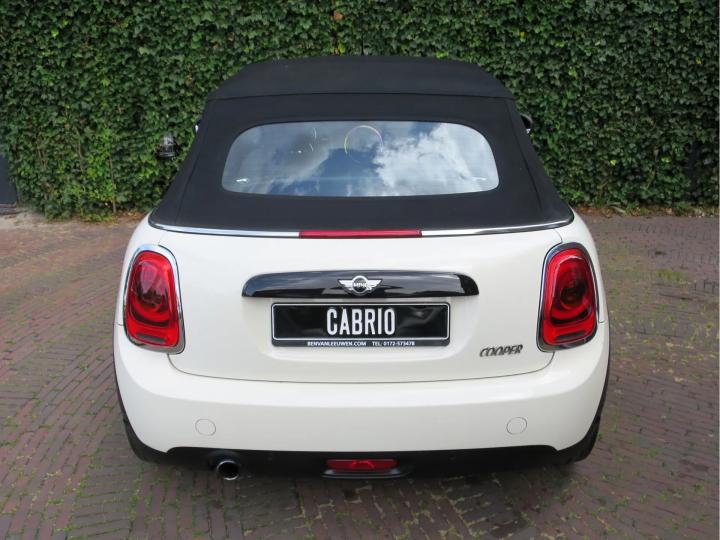 Zeer nette, goed onderhouden Mini Cabrio Cooper F57 in de kleur Pepper White met een zwarte stoffen kap, zwarte 17" Cosmos Spoke lichtmetalen velgen en een half leder Carbon Black sportinterieur met een Carbon Black colourline en Piano Black interieurdelen! Deze Cooper Cabrio heeft slechts 1 eigenaar gehad die er slechts 59.399km mee heeft gereden. De Cabrio is o.a. uitgerust met een origineel windscherm, Park Distance Control (PDC) achter, LED kop- en mistlampen, climate control, lederen multifunctioneel sportstuur met cruise control, stoelverwarming, lichtpakket en opbergpakket.