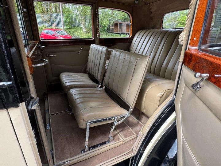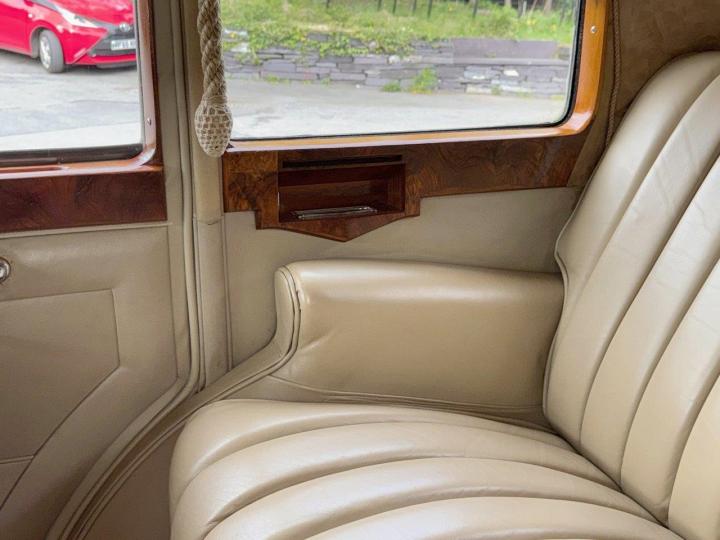 A very smart limousine, ideally suited to wedding hire use, and at the same time better than many others on offer, but also a good, spacious clean and tidy car for family fun. The car is sound in wind and limb, and the doors fit well, with no sign of ‘drop’, or movement. Paintwork is very presentable, with a deep shine, accompanied by impressive chrome plating, including the correct and attractive array of Lucas lamps (including rare and desirable QK596 headlights) and long-trumpet horns. The interior is also lovely, particularly the rear compartment of soft, high quality beige leather, excellent carpets, etc, all being fresh, correct and smart. Light and spacious inside. Mechanically, the car is all good, the engine has correct, even compressions, driving nicely, and offered MoT tested.