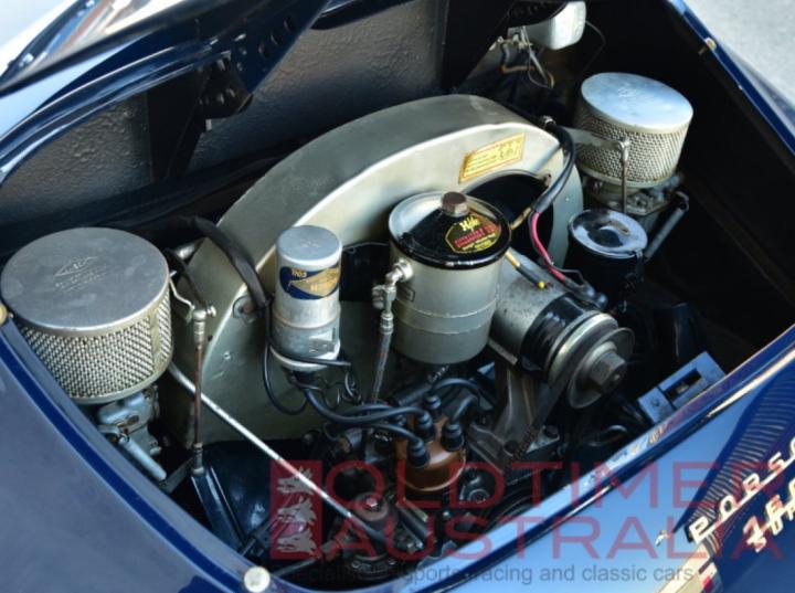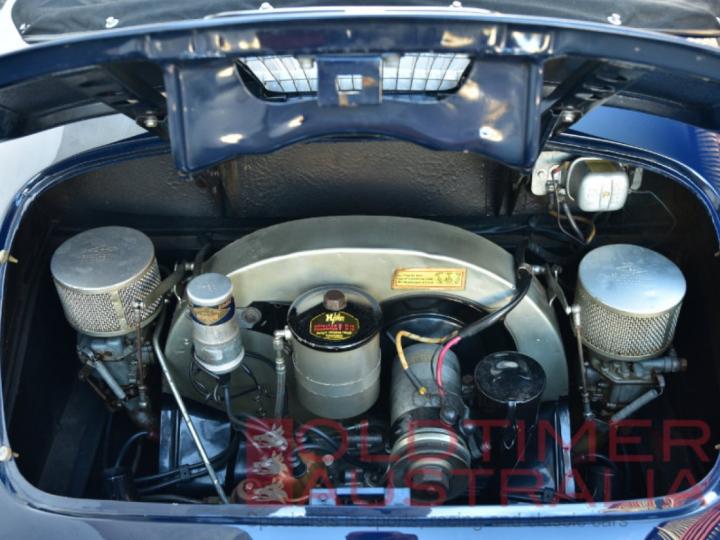 The Kardex on file confirms this car left the factory on the 15th November 1957 and was destined for Porsche dealer Hamilton in Melbourne. The car was painted ‘Meissen Blue’ (paint code 5703) with a red interior (colour code A). The car was delivered with the following options: Tacho in miles, USA bumpers, seats from a coupe, tonneau and RHD.
