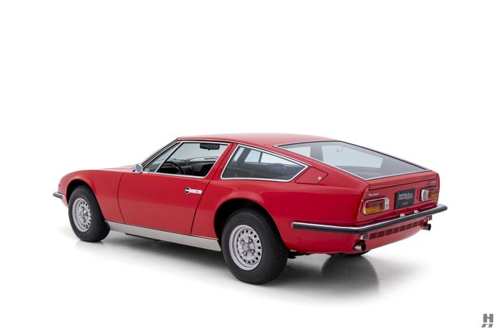 Unlike the more visceral Ghibli, the Indy was envisioned as a true grand tourer—capable of fast, comfortable long-distance motoring with room for luggage and passengers alike. Its flowing two-door profile cloaked a robust platform powered by a front-mounted, all-alloy, 4.2-liter DOHC V8 fed by four Weber carburetors and mated to a ZF 5-speed gearbox. Disc brakes on all four wheels, independent front suspension, and a fastback rear hatch with 18 cubic feet of luggage space made the Indy a refined yet capable machine. The car was a statement of Maserati’s continued confidence at the dawn of the 1970s, combining elegance, performance, and practicality in a distinctly Italian package.